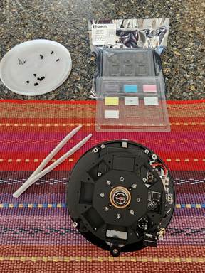 Although the idea of having to assemble the filter wheel (i.e., place the filters into their correct position and in the correct orientation) seemed a little foreboding, it turned out to be a fun distraction from the software driver debacle for the mechanical engineer in me!